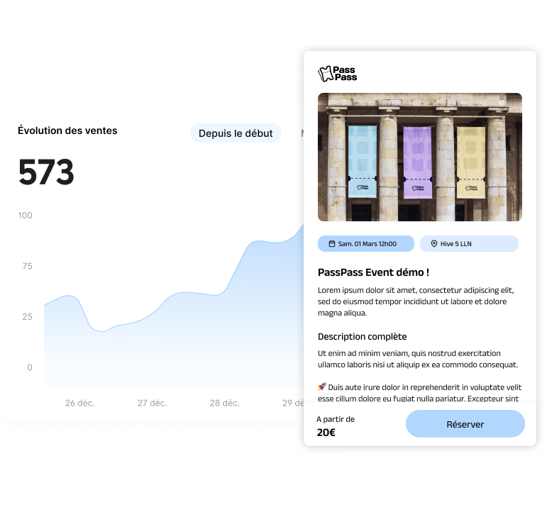 An effective platform should allow you to go from idea to sale in a matter of minutes. Adding a title, setting a date, choosing a location, inserting a description, and creating different ticket categories should not require any special technical skills.